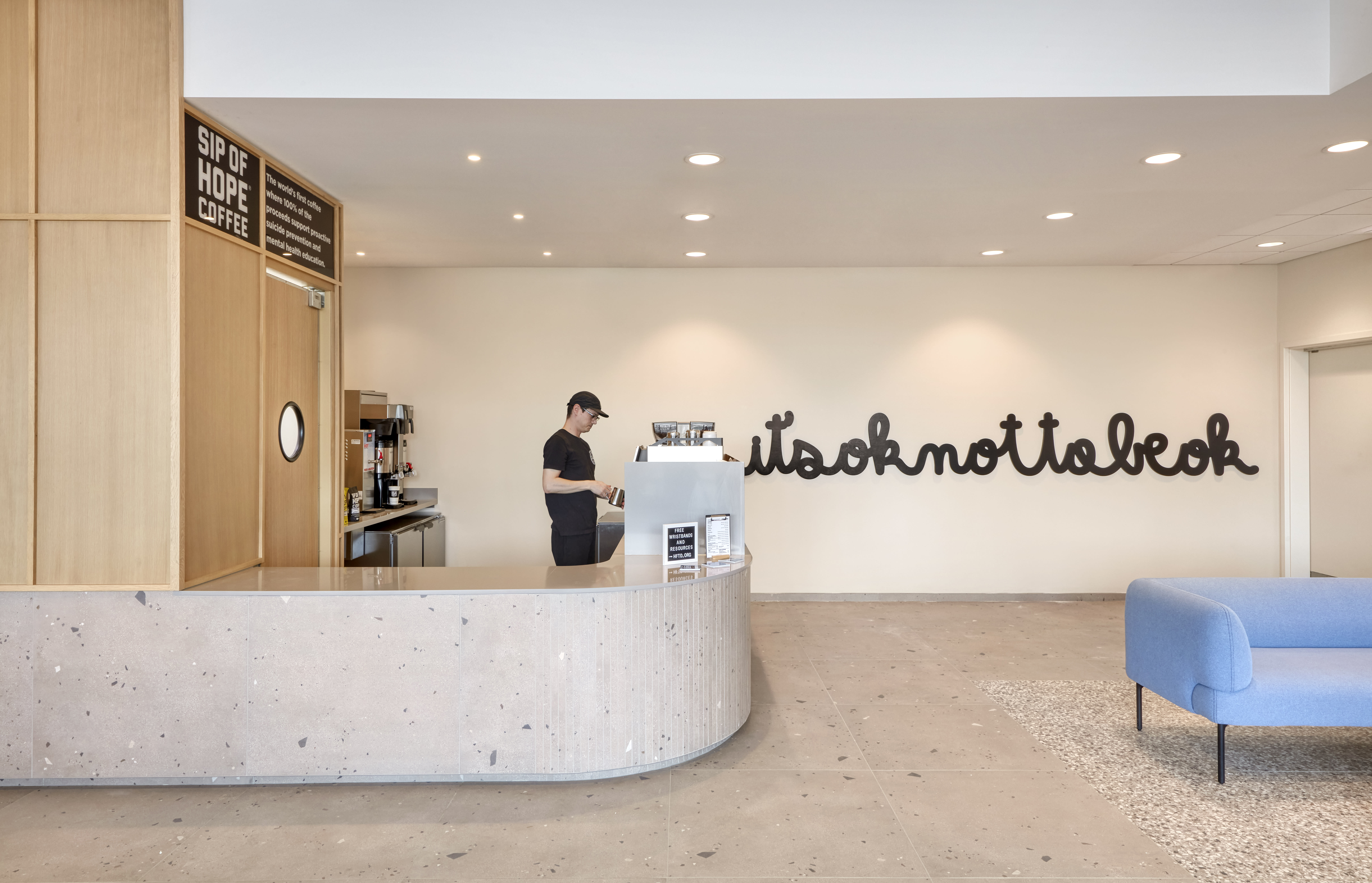 “We wanted the design to accommodate patients and neighbors coming to the space to recharge, as well as hospital employees looking to connect with one other,” said Elyse Agnello, Founding Principal of DAAM. “The timeless, natural palette provides a calm, inviting backdrop for both.”